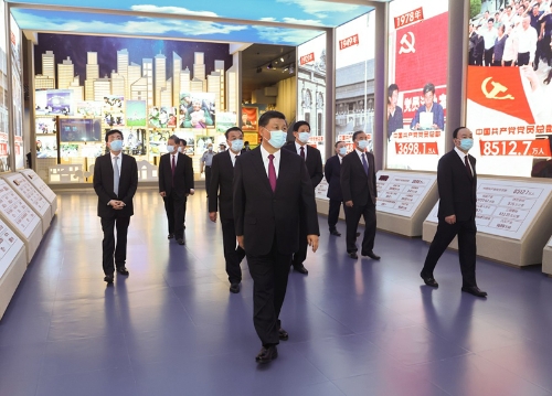 ■ 黨的歷史是最生動、最有說服力的教科書。我們黨的一百年,是矢志踐行初心使命的一百年,是篳路藍縷奠基立業的一百年,是創造輝煌開辟未來的一百年?;赝^往的奮斗路,眺望前方的奮進路,必須把黨的歷史學習好、總結好,把黨的寶貴經驗傳承好、發揚好,銘記奮斗歷程,擔當歷史使命,從黨的奮斗歷史中汲取前進力量。要教育引導廣大黨員、干部通過參觀學習,更加自覺地不忘初心、牢記使命,增強“四個意識”,堅定“四個自信”,始終在思想上政治上行動上同黨中央保持高度一致,堅定理想信念,學好用好黨的創新理論,賡續紅色血脈,發揚光榮傳統,發揮先鋒模范作用,團結帶領全國各族人民,更好立足新發展階段、貫徹新發展理念、構建新發展格局,全面做好改革發展穩定各項工作,匯聚起全面建設社會主義現代化國家、實現中華民族偉大復興中國夢的磅礴力量
