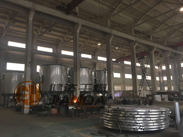 現(xiàn)健達(dá)干燥車間有十幾臺盤式干燥機(jī)在制造中,另外,在工期單上,還有幾十臺在排隊(duì)進(jìn)入生產(chǎn)周期。