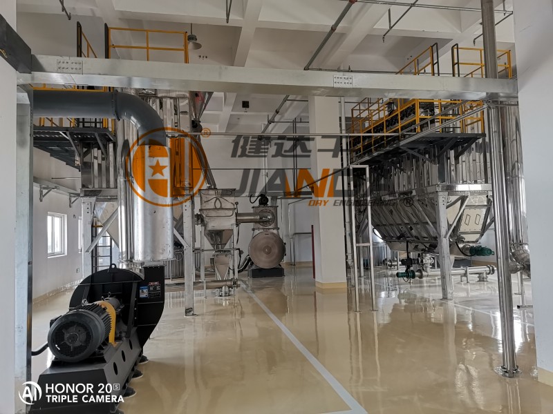 此公司主營豌豆及其他蛋白、淀粉及其制品、膳食纖維、醫用蛋白的研發,生產和銷售。考慮到此次物料為豌豆膳食纖維,需要其最終成品具有良好的持水性、乳化性、懸浮性、增稠性和膨脹力,使其運用于烘培食品、肉制品、營養補充等食品中,健達研制節能環保閃蒸干燥生產線,為豌豆深加工把好最后關卡。
